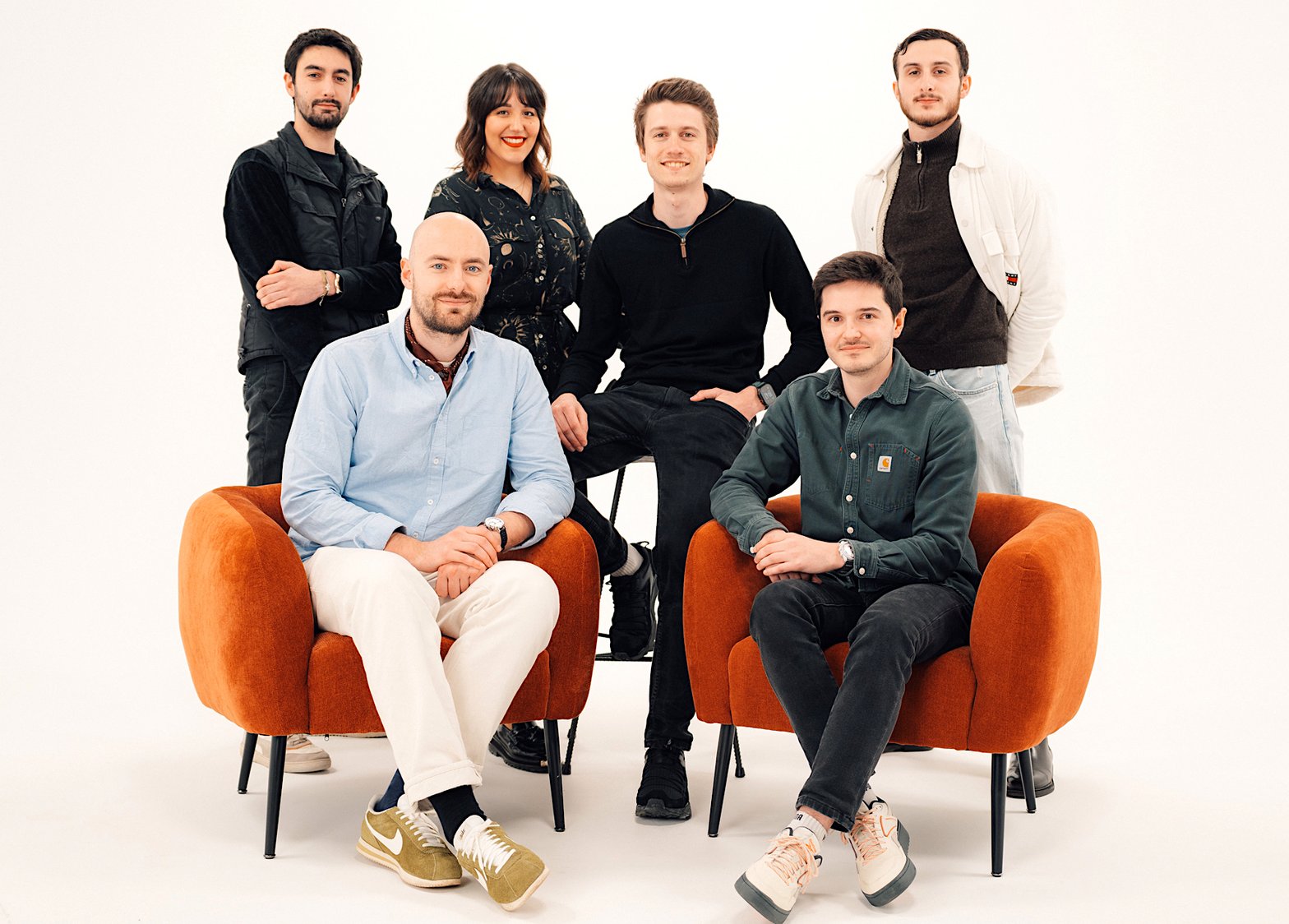 De g. à d. et de h. en b. : Thomas Dubet (Studio Par Ici), Margot Henry (Midnight), Gaspard Rerolle (Studio Par Ici), Léopold Cairon (Zesto), Thomas Rebours (SEEN), Anthony Magnin (Zesto). © DR