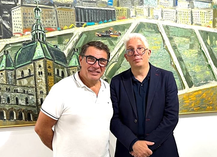 Charles Couty (à g.) et Jean-Philippe Pelou-Daniel devant une huile sur toile de 1961. © Lyon People