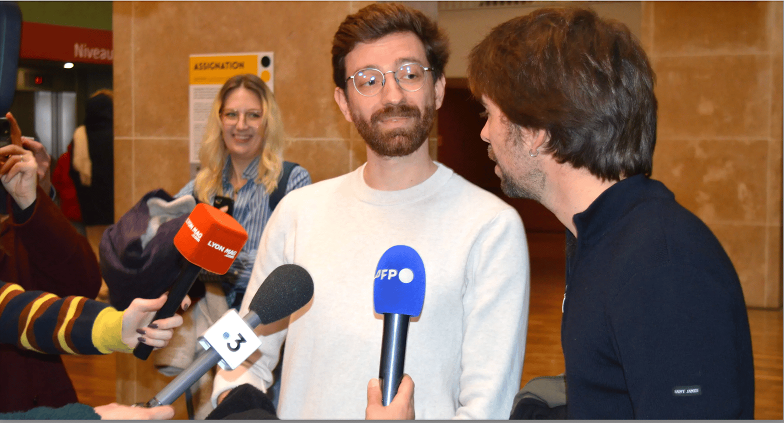 Moran Kerinec et Pierre Lemerle à la sortie du tribunal. © ED/Rue89Lyon
