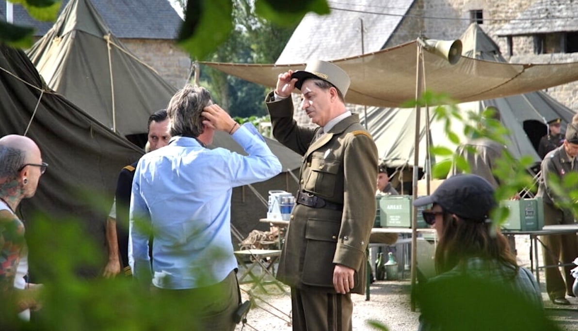 Simon Abkarian sur le tournage de De Gaulle avec le réalisateur Antonin Baudry. © Pathé Films