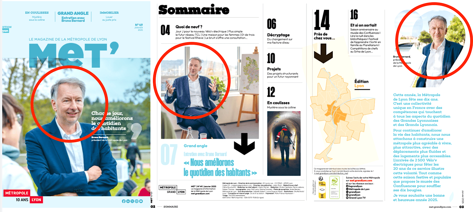 Trois photos de Bruno Bernard dans les trois premières pages de son magazine de janvier 2025. Une aberration éditoriale qui pourrait coûter cher dorénavant.
